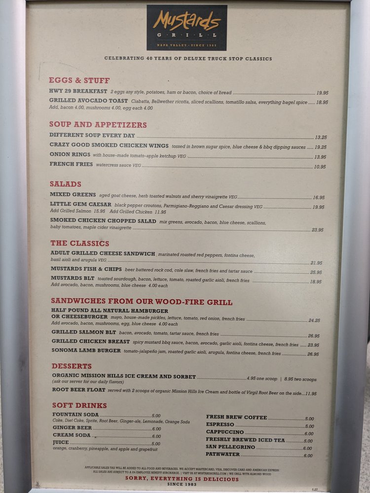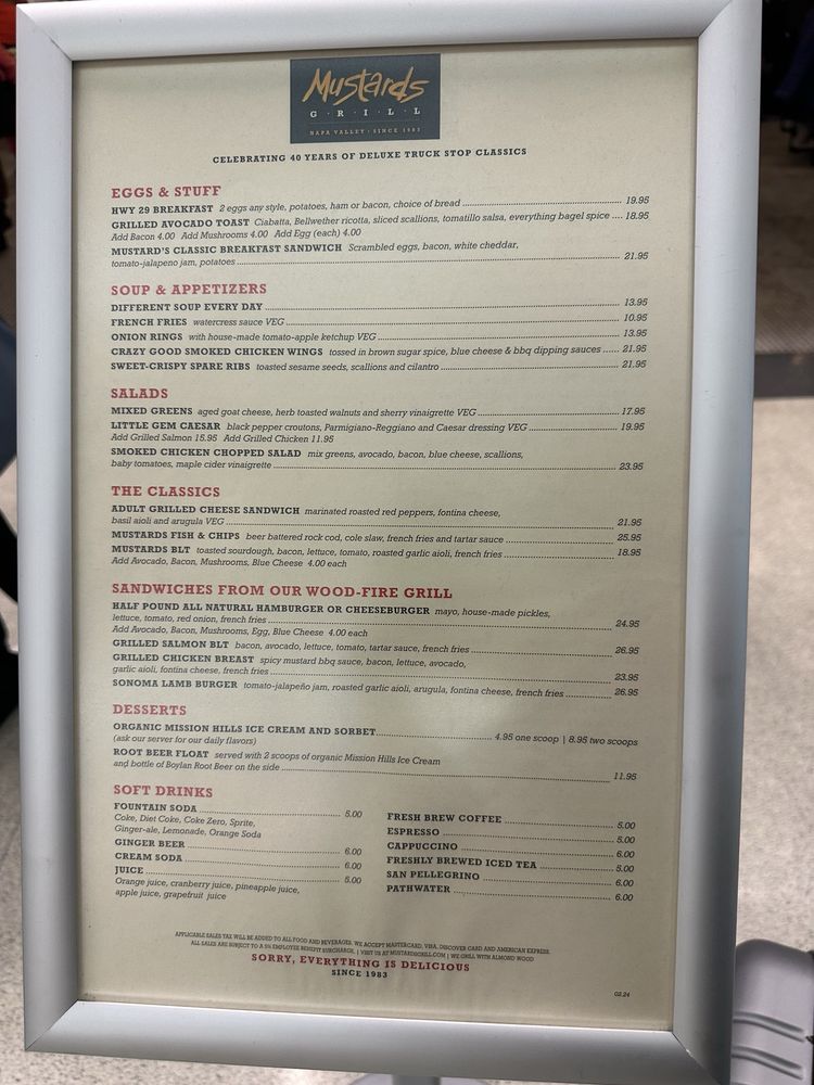 Welcome to Mustards Bar & Grill, a charming eatery nestled in the heart of San Francisco's International Terminal. Specializing in classic American fare, this casual dining spot is perfect for families, groups, or even a quick bite before your flight. The menu features a range of mouth-watering dishes, with highlights including hearty burgers, grilled specialties, and vegan options to satisfy diverse palates.